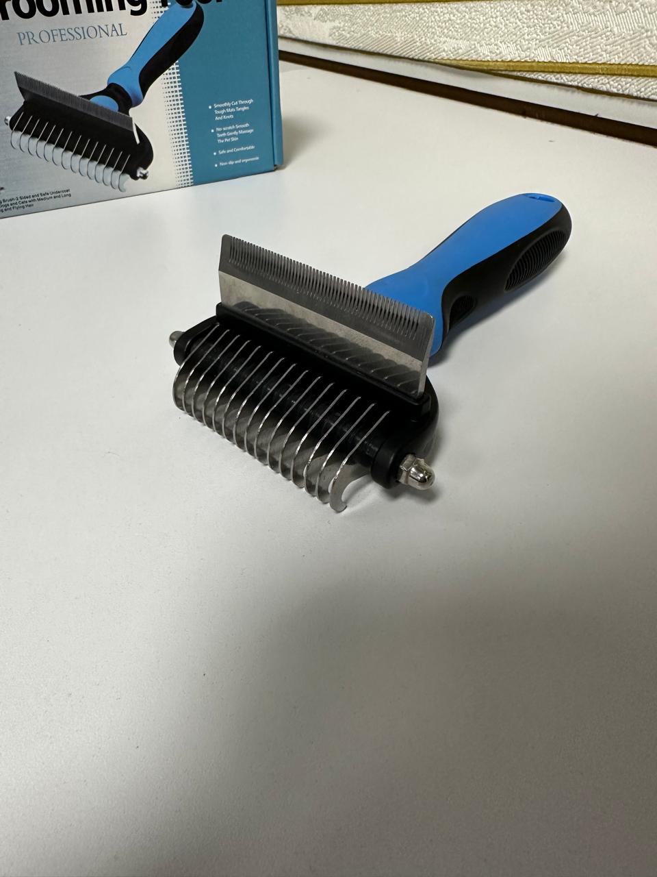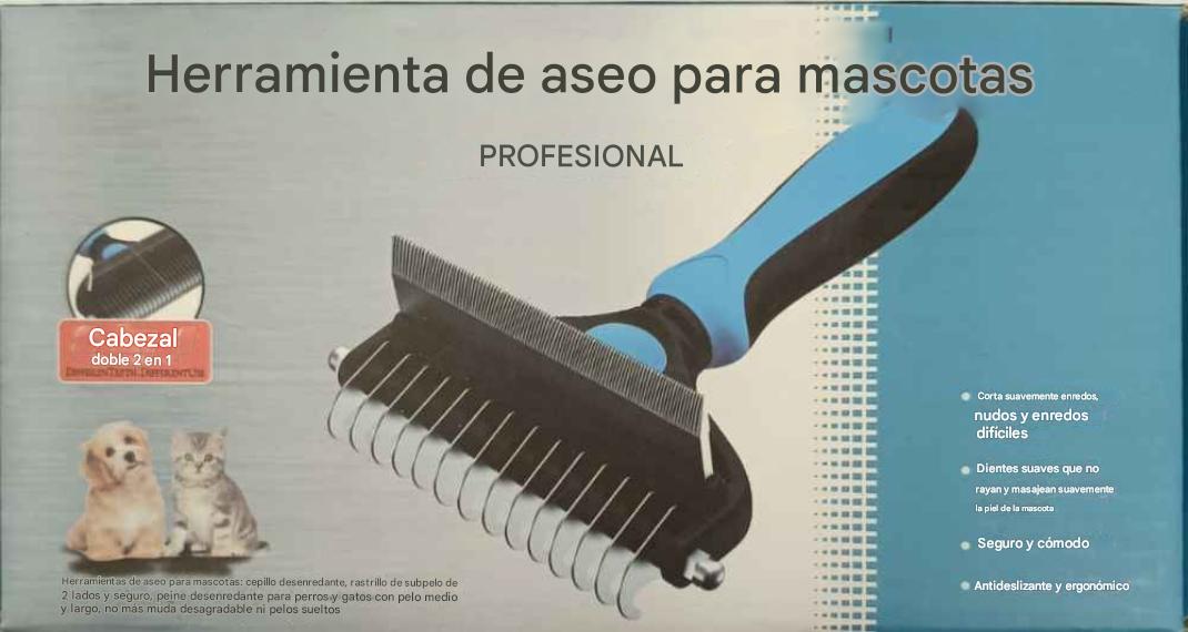 - Cepillo para mascotas con doble dentadura, ideal para doble uso.